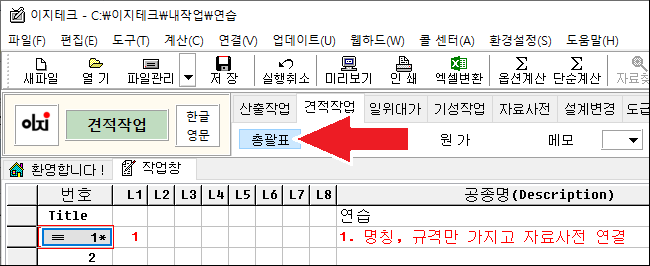 - 저장을 하고 [ 총괄표 ]로 이동합니다.