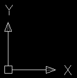 - WCS로 제작된 도면의 경우 좌측하단의 화살표 꼭지점에 그림과 같이 네모가 표시됩니다.